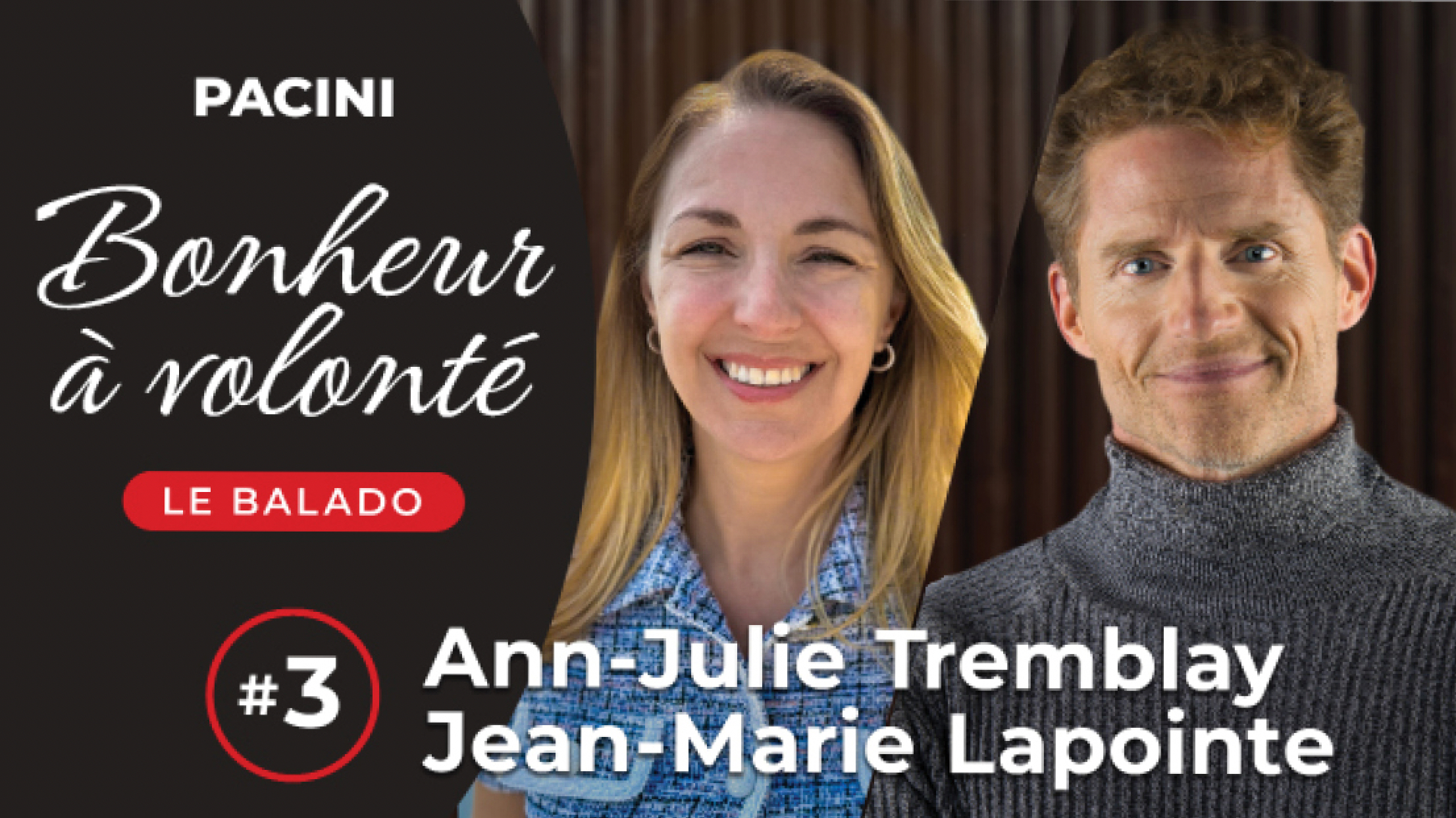 BALADO Ann-Julie Tremblay & Jean-Marie Lapointe Bienvenue dans ce troisième épisode de Bonheur à volonté! Au menu aujourd’hui: Nous recevons Jean-Marie Lapointe et Ann-Julie Tremblay, directrice générale de la Fondation Jean Lapointe. Ensemble, ils démystifient la mission de la Maison Jean Lapointe et de la Fondation, expliquant comment ces deux entités travaillent main dans la main pour soutenir les personnes aux prises avec des dépendances. Jean-Marie partage son histoire personnelle, notamment la perte de sa mère due à l’alcoolisme et le rétablissement de son père, fondateur de la Maison. Ils abordent aussi les préjugés entourant la dépendance, soulignant qu’il s’agit d’une maladie et non d’un