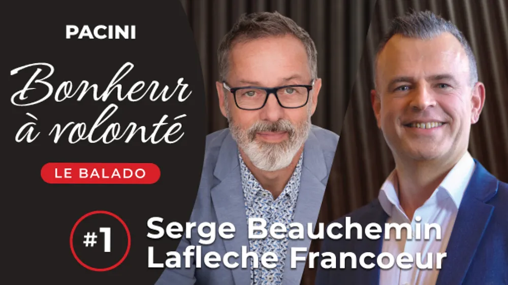BALADO SERGE BEAUCHEMIN ET LAFLÈCHE FRANCOEUR Bienvenue dans ce premier épisode de Bonheur à volonté! Au menu aujourd’hui: une discussion inspirante sur le leadership et la bienveillance avec Serge Beauchemin ainsi que Laflèche Francoeur, vice-président exécutif chez Pacini! Ils partagent leurs expériences sur l’importance de l’humain en milieu de travail, l’intuition dans les relations professionnelles, et comment l’amour et la bienveillance peuvent transformer une entreprise. La conversation aborde également du sondage psychométrique de Laflèche, qui lui a fait changer sa perspective, l’évolution personnelle et la performance!