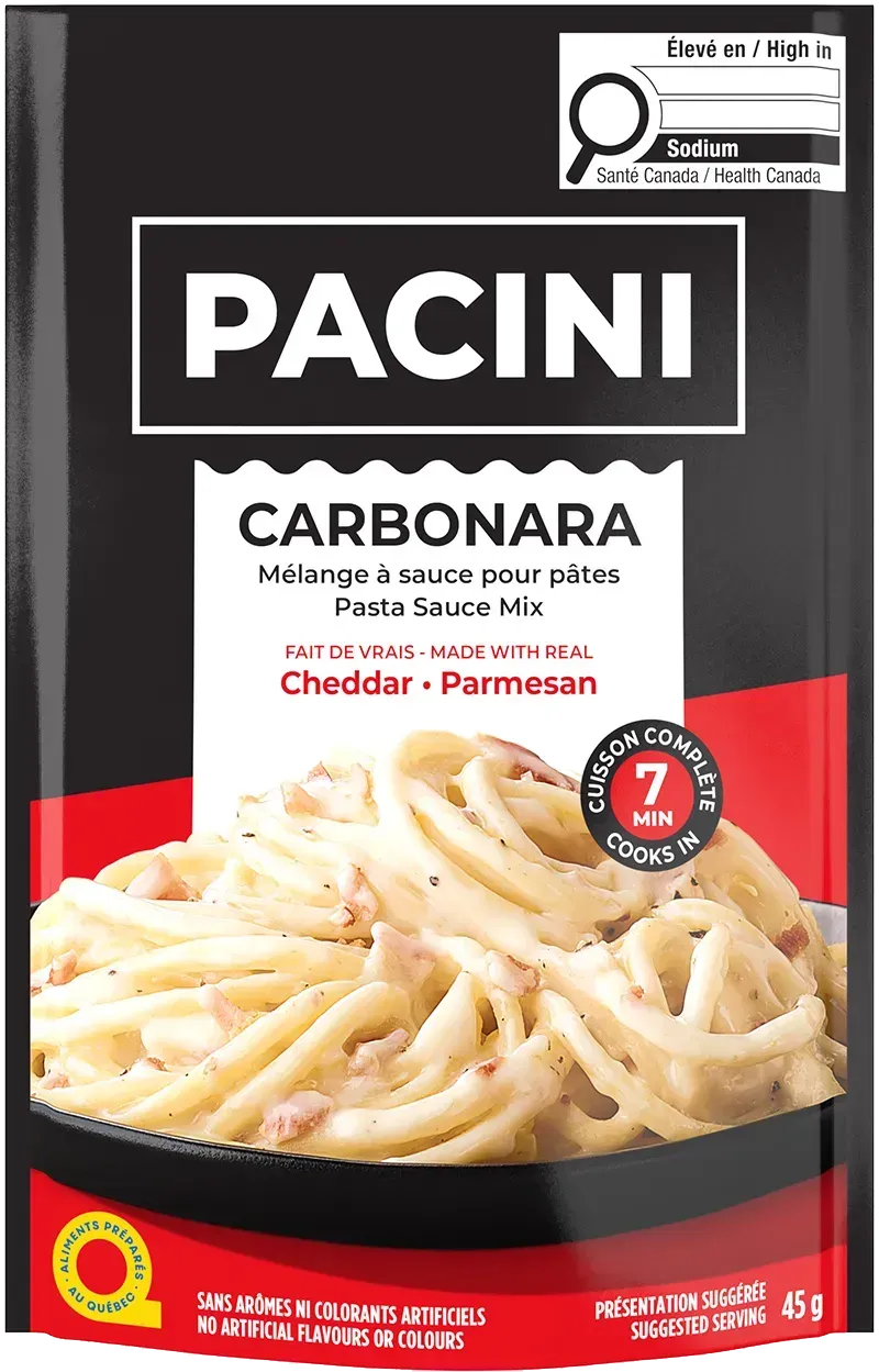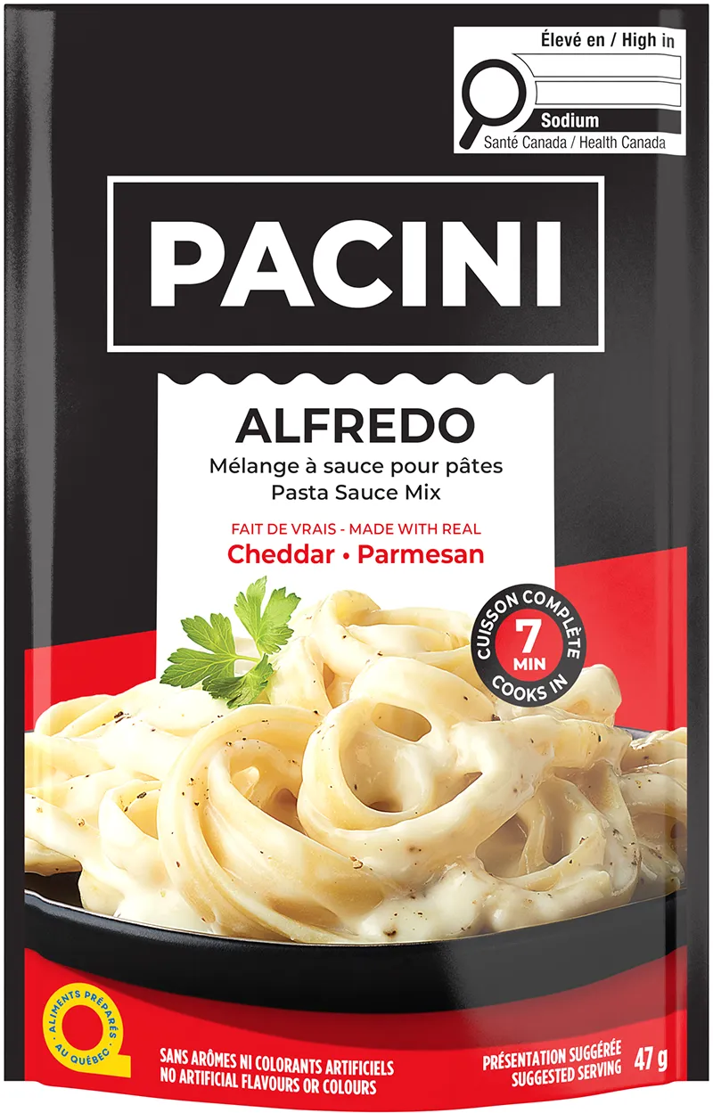 Disponibles en épicerie partout au Québec, les 4 sauces déshydratées Pacini sont aussi savoureuses que simples et rapides à préparer. Sans arômes ni colorants artificiels, elles représentent une bonne source de calcium et ne contiennent ni blé, ni gluten, ni œufs, ni huile de palme. Inspirées par l’Italie et préparées au Québec avec du vrai fromage cheddar et parmesan, elles combleront les papilles de toute la famille.